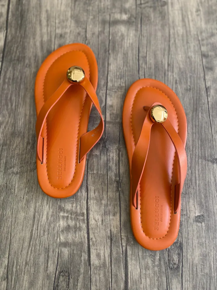 Sandales minimaliste avec boucle dorée - orange